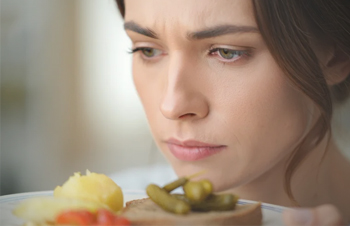 Раннее распознавание симптомов помогает вовремя обратиться за помощью. Главный признак: регулярные приступы обжорства с употреблением большого количества еды за короткое время. После компульсивного переедания происходит самовызывание рвоты для предотвращения набора веса. Другие симптомы: